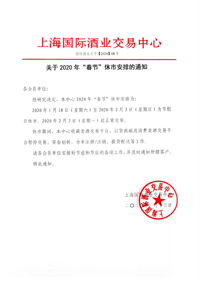 关于“水晶舍得2012”等5款酒品终止交易及限期提货的通知