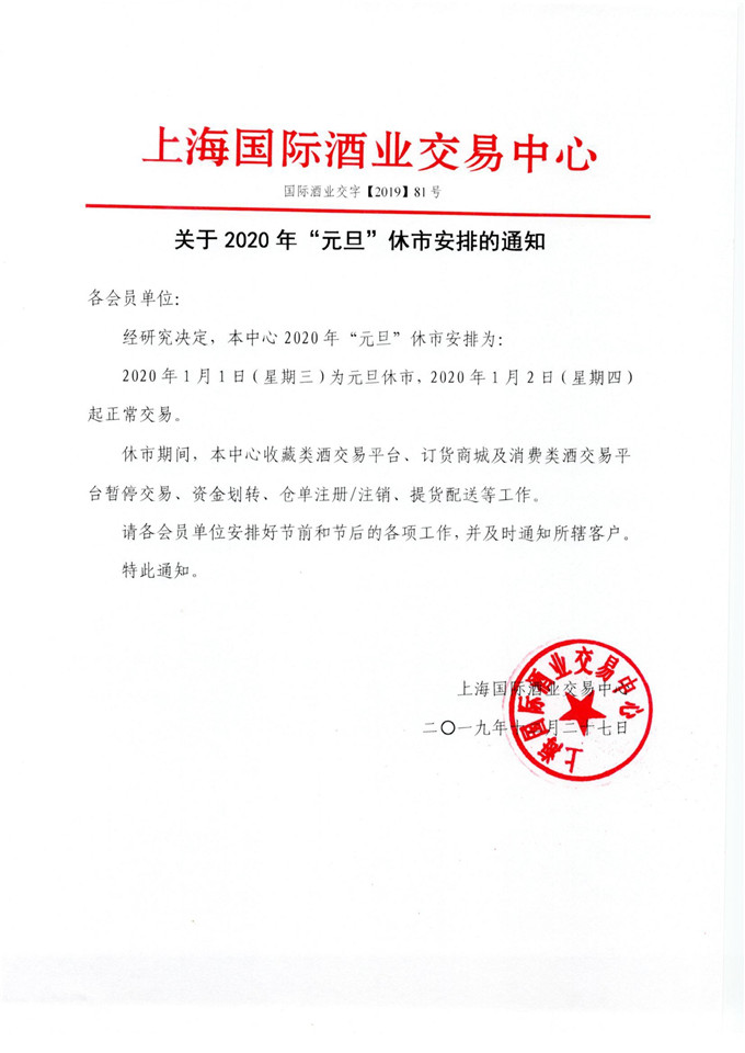 关于“水晶舍得2012”等5款酒品终止交易及限期提货的通知