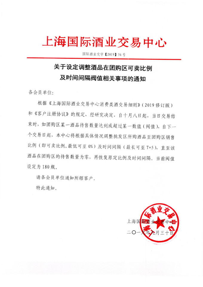关于设定调整酒品在团购区可卖比例及时间间隔阀值相关事项的通知
